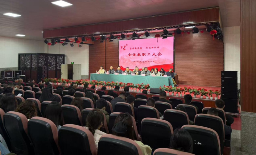 2026年3月11日下午,学校召开春季学期开学全体教职工大会,执行校长杨天文出席会议并讲话,会议由副校长邹从可主持,全体教职工与会。本次会议回顾了2025年的办学成果,并结合新形势部署了2026年度重点工作。